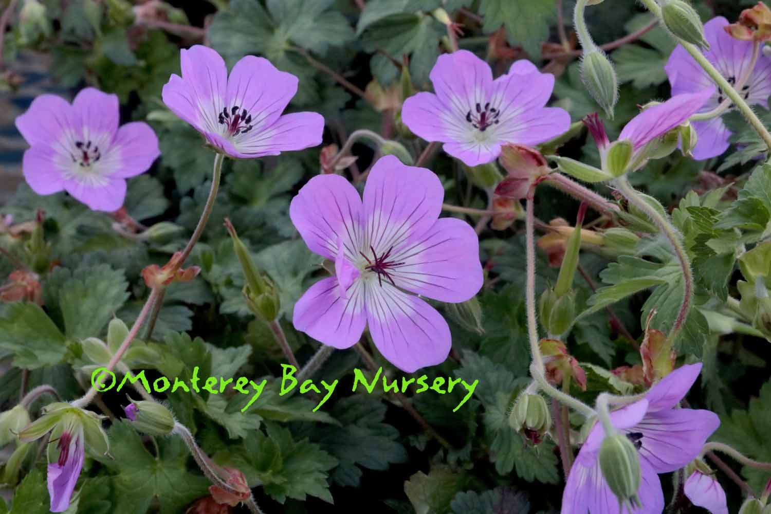 'Bloomtime' flowers very similar to the sublime and irreplaceable 'Rozanne,' this is a lighter lavender pink flower but otherwise very similar appearance. A knock-off, but a very nice and useful one. Also very long-blooming and highly low-chill insensitive, a huge bonus for us here, where almost all other perennial blue/purple geraniums slowly decline and fail except in our colder winter areas. Same growing info/parameters as for 'Rozanne.' rev 5/2018