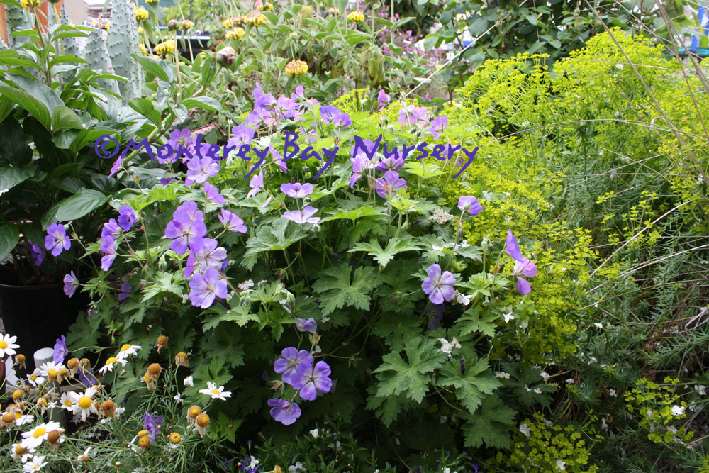 Geranium evergreen to deciduous clumping, running, or trailing perennials, mostly low growers, with flowers ranging from white through blue, purple, and red (no yellows). Mostly used in mixed gardens but occasionally as large scale ground covers. This is not where you will find the common red zonal geraniums, ivy geraniums, or Martha Washington geraniums, all of which are classified as Pelargonium. Geraniaceae. rev 2/2003