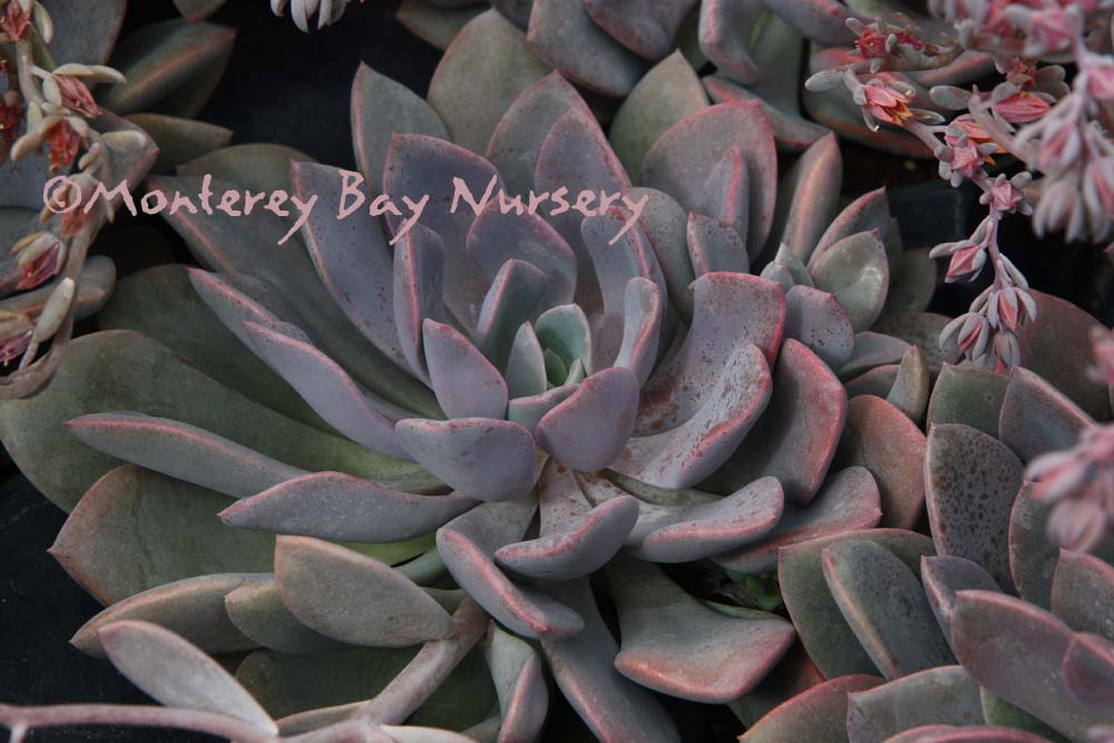reniforme (not currently in production) densely set dark green leaves with a silvery sheen, low, spreading and slightly mounding habit, spreading at a moderate rate by rooting in stems. In full sun it is more silvery, in full light shade leaves are larger, greener and plants spread more quickly. Spikes of spidery deep rose magenta flowers in rounded clusters above the folaige make a great show in midsummer. An excellent, very drought tolerant groundcover for sun or shade, and very showy to boot. Good landscape examples can be seen around the entrance areas of the UC Berkeley Botanic Garden. South Africa. USDA zone 9? rev 5/2015
